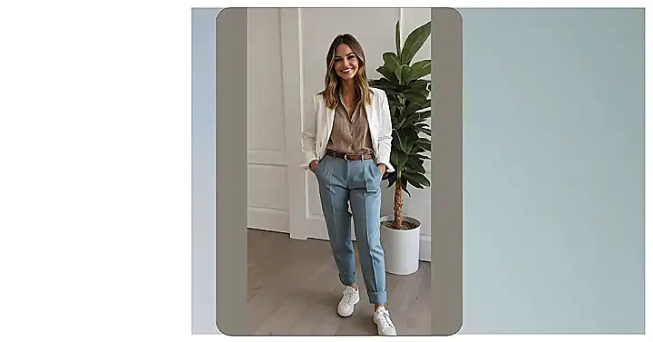 Want to look instantly put-together without feeling like you’re trying too hard? Check out this spring outfit idea! It’s like someone took business casual and gave it a major cool-girl makeover. Rock those light blue pants that are comfy enough for class but stylish enough for after-school hangouts. And that blazer? It’s the perfect way to say, “Yeah, I’m ready for anything!” without actually *being* ready for anything, which, let’s be honest, is most of the time.