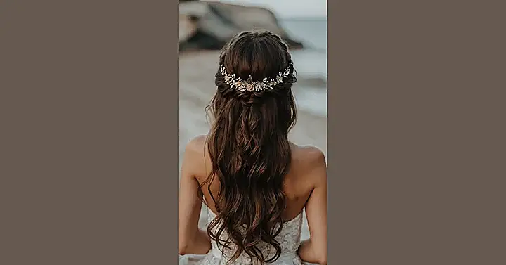 Just look at those perfect curls cascading over her shoulder! Her hair is styled in a way that’s half-up, half-down, giving her both a fancy feel and a relaxed vibe. Holding that cool bouquet of feathery pampas grass and green leaves, she looks effortlessly chic. Forget trying to fit into a thimble; this is all about embracing your inner, well, *longer-haired* fairy. So, if your friends are talking pixie cuts, but you’re secretly dreaming of hair that flows, this magical style shows you can still sprinkle fairy dust with plenty of length!