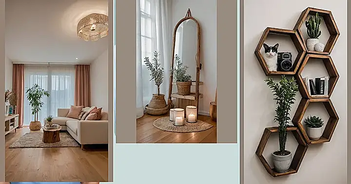 Check out these awesome hexagon shelves! They’re like a beehive for your home, but way cooler. You can totally deck them out with plants, books, even a grumpy-but-cute cat like the one pictured (don’t tell him I called him grumpy!). It’s a super stylish way to add some personality to your room without breaking the bank – proof that luxury home decor doesn’t have to cost a fortune!