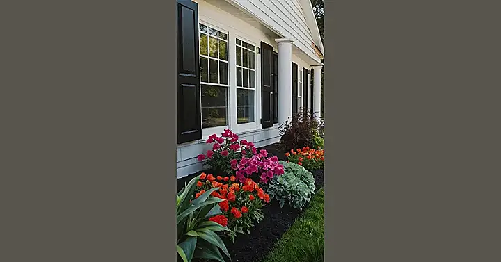 This house has a flower bed that’s seriously got it going on! It’s not just a bunch of flowers thrown together, oh no. It’s a carefully designed masterpiece with different colors and textures, all carefully placed to make your eyes happy. Imagine coming home every day to this rainbow of petals, and feeling like you’ve just stepped into a botanical wonderland! It’s like the flowers are saying, “Hey, we’re here to make your day a little brighter!”