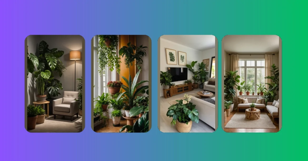 Having room plants is basically like getting really quiet, leafy roommates who pay zero rent but make your place look way cooler. Just check out this living room – it’s got a whole squad of green buddies chilling everywhere! There are big leafy giants by the TV, smaller guys lined up on the stand like they’re waiting for snacks, and even a huge one up front, probably trying to get the best spot for sunshine and maybe judging your scrolling habits. They just hang out, look pretty, and politely ignore your questionable dance moves. It’s a low-key party, and everyone’s invited… as long as they have leaves.