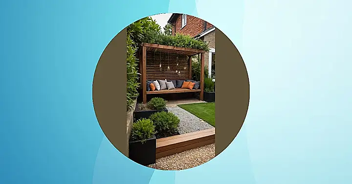 This garden might not be big enough for a full-on soccer match (unless you’re really good at tiny footwork!), but it’s absolutely massive on style and comfort. Just check out that super-stylish wooden bench under the pergola, practically begging you to ditch your phone and grab a good book. With all those squishy cushions, it’s like a giant outdoor sofa that somehow perfectly squeezes into this awesome spot. Who needs a sprawling estate when you can have your own personal, fairy-lit sanctuary right here, complete with fancy hanging lights that make even your awkward family photos look cool at night?