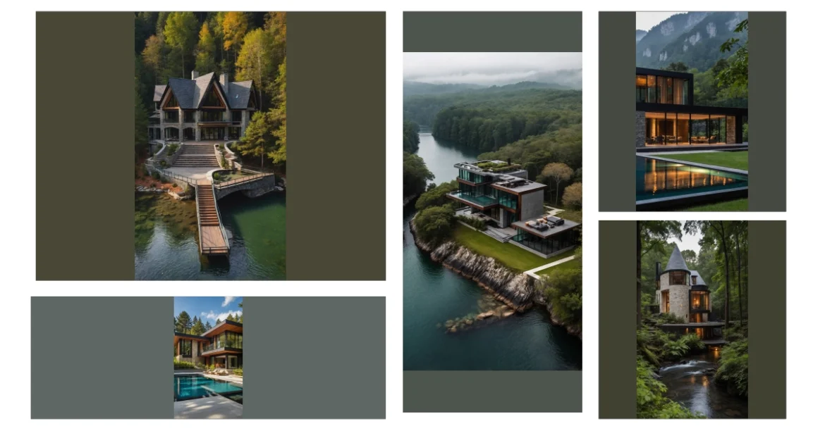 Whoa, check out this place! It’s like someone decided to build a super-modern fort right in the middle of a postcard, but instead of roughing it, they brought along every luxurious thing they could find. This forest mansion isn’t just big; it’s practically made of glass, meaning you’d have the best seat in the house for every single sunset over that shimmering river. I bet the nearest neighbor is a very confused squirrel, wondering why there’s a glowing palace in its backyard and if there’s an open-house tour with free snacks. Just imagine trying to explain to your friends that your “rustic” weekend getaway involves floor-to-ceiling views of actual mountains and a river that looks like melted gold.