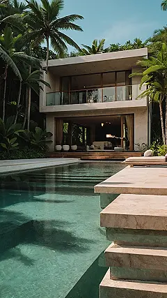 Imagine this: you’re lounging by a sparkling blue pool, the sun warming your skin, surrounded by lush tropical plants. Palm trees sway gently in the breeze, and the only sound is the gentle lapping of the water. This isn’t a dream—it’s a tropical luxury house villa, just like the one pictured! It’s seriously the ultimate chill spot—picture yourself with a fruity drink, totally relaxed and soaking up the amazing view. This place screams “vacation mode,” even if it’s just a picture!