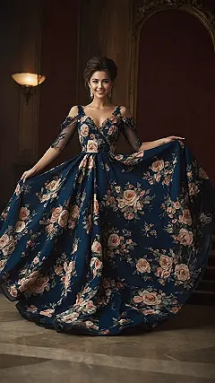 Okay, maybe you can’t literally get lost in this much fabric, but this kind of long frock design makes you feel like you could float away on a cloud of roses! Wearing something this swirly and floor-length is practically a superpower. You might need a buddy just to help you navigate corners or make sure you don’t accidentally sweep the entire floor, but hey, looking this good is worth the potential minor tripping hazard, right? It’s basically your own personal flower parade following you everywhere.