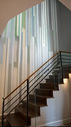 Who needs a vacation when your staircase is basically a work of art? It’s like having a super cool mural that also happens to be a backdrop for your daily climb. Just try not to get too distracted by the view and trip on the way up!