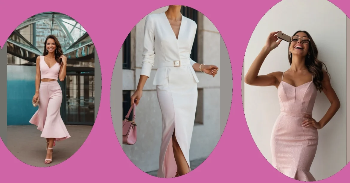 This outfit is totally rocking the “women pink outfits” keyword! It’s like a modern-day princess went shopping for a super stylish, grown-up look. That gorgeous pink two-piece is seriously chic, and the high-slit pants add a touch of “wow”—just imagine all the heads turning! It’s perfect for a fancy dinner, a party, or maybe even just showing off to your friends (we won’t judge!).