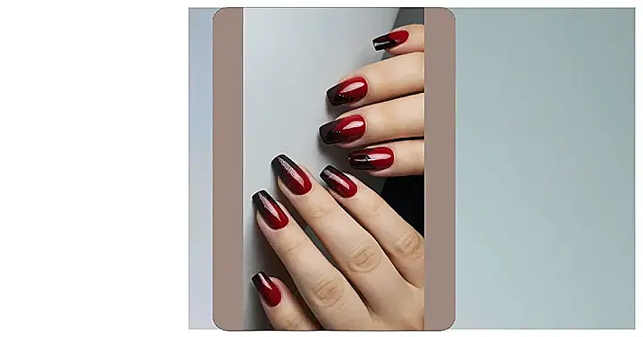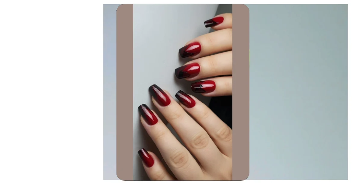 These nails are seriously fire! Imagine: you’re rocking this red-and-black ombre look, and everyone is asking, “Where did you get those amazing nails?!” It’s like a tiny, classy party on your fingertips, with a touch of sparkle. Seriously, this is the perfect mix of simple, elegant, and totally head-turning – the kind of nail art that makes you feel like a superhero, even if all you’re doing is conquering your next pop quiz.