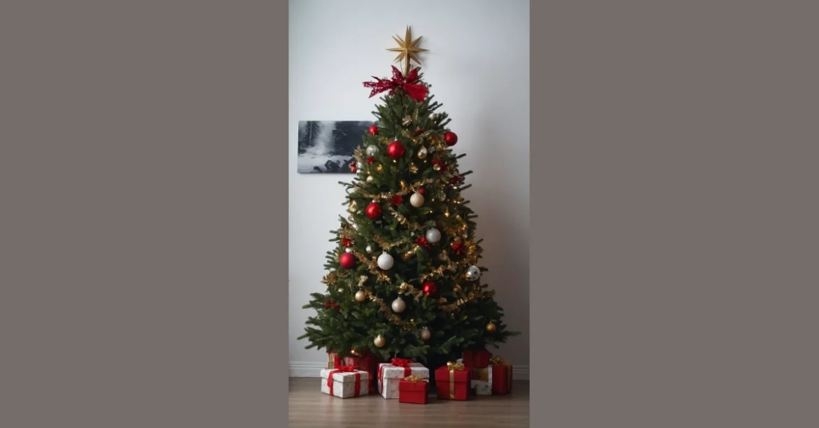 This Christmas tree is seriously goals! Look at those ornaments – shiny, sparkly, and enough red and gold to make Santa himself jealous. It’s like a magical explosion of festive cheer, and the presents underneath? Don’t even get me started! It’s the perfect picture of a cozy Christmas, especially with that roaring fireplace adding to the warm and inviting atmosphere. It’s giving major holiday vibes, and I’m already dreaming of hot cocoa by the fire with all my favorite people. This image makes me want to raid my family’s attic for vintage ornaments and start decorating immediately!