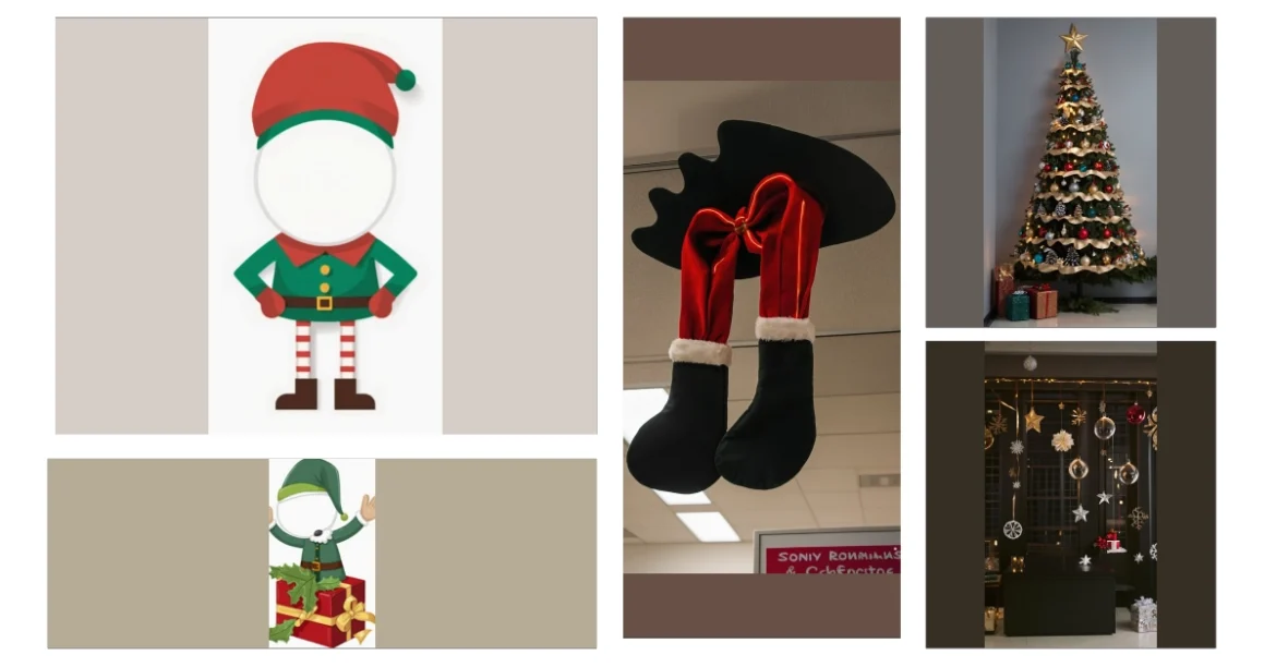 This picture is totally hilarious! It’s like someone tried to decorate the office for Christmas, but Santa’s head mysteriously vanished! We’ve got his hat, his jolly red suit, even his big sack of presents – but no Santa! It’s the perfect “Where’s Waldo?” of Christmas office decorations – except instead of Waldo, it’s the most important guy of the holiday season. Maybe he went off for a quick mince pie refill?