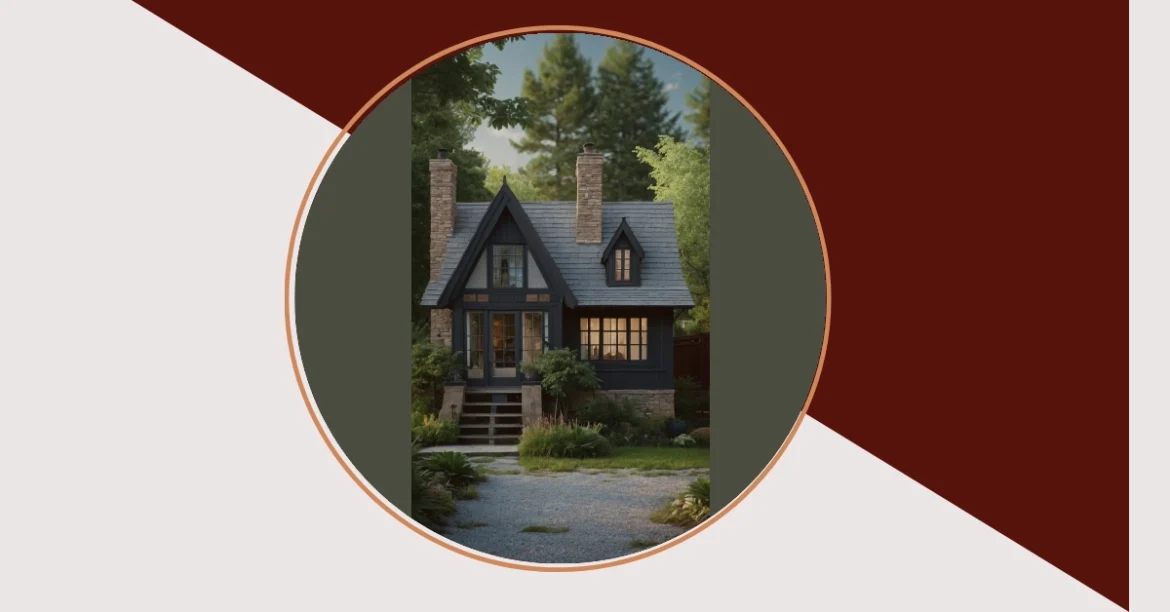 This isn’t your grandma’s cottage, unless your grandma had seriously awesome taste! This place is like a fairytale house that went goth – dark, sleek exterior, but still super cozy and charming. It’s got that classic cottage feel with the pointy roof and stone chimney, but with a modern twist. Imagine curling up by the fireplace with a good book, completely ignoring the fact that the outside looks like something out of a cool, spooky movie.