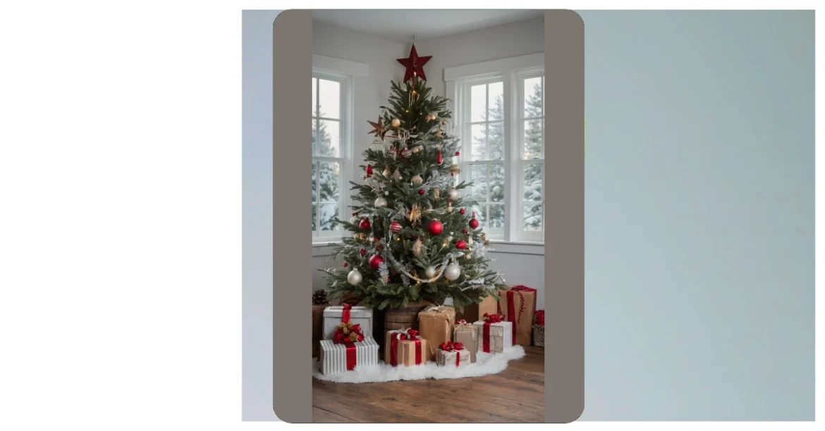 Wow, check out that Christmas tree! It’s like stepping into a cozy cabin in the woods. All those rustic touches – the burlap ribbon, the natural-looking ornaments, even the slightly wonky placement of the presents makes it feel super heartwarming and less “perfect Christmas card” and more “real life Christmas magic.” It’s totally giving off that “Grandma’s house on Christmas morning” vibe, and honestly, who doesn’t love that? I bet it smells amazing in there, too!