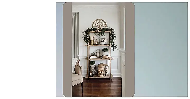 That standing shelf is totally rocking the Christmas spirit! It’s like a cozy winter wonderland crammed onto three levels – a gorgeous garland draped across the top, twinkling candles, and cute little plants adding a touch of nature’s magic. It’s proof that you don’t need a massive tree to have a festive home. Even better, you can change it up anytime you want! This year, it’s cozy candles and winter greenery; next year, maybe it’ll be candy canes and tiny reindeer!