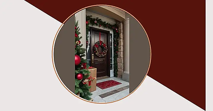This Christmas, ditch the boring door and embrace the festive cheer! Look at this gorgeous entrance – it’s like a Christmas card come to life! That stunning wreath, all decked out in reds and golds, is practically shouting “Merry Christmas!” from the doorway. And don’t even get me started on the garland; it’s practically overflowing with festive fun. It’s a total Christmas explosion of awesome decorations, and it’s making me want to bake cookies and drink hot cocoa just by looking at it.