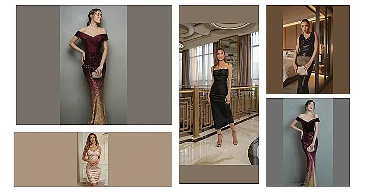 This dress is like a magical sunset, starting with a rich, velvety burgundy top that screams “sophisticated,” and then magically transitioning into a dazzling display of gold and rose-gold sequins! Imagine dancing the night away, feeling like a total queen, every shimmer and shine catching the light. It’s the perfect outfit to make heads turn, whether you’re hitting the dance floor or just grabbing a selfie with your besties. This dress isn’t just a dress; it’s a confidence booster, a party starter, and a definite head-turner!
