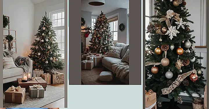 This picture screams “modern Christmas” without screaming at all! It’s like a cozy, classy scene straight out of a magazine. That gorgeous, elegantly decorated tree with its soft, shimmery ornaments is the star, of course. But look at all those presents! They’re wrapped in such sophisticated neutral tones – it’s super stylish and makes you feel calm instead of overwhelmed, which is exactly what you need during the holidays. And those candles? Perfect for creating a warm and inviting atmosphere – instant snuggles!