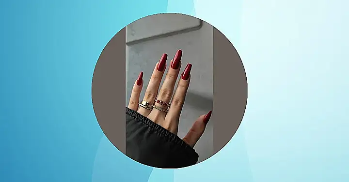 OMG, check out these nails! They’re like, the perfect mix of fancy and easy. It’s totally classy, but also super simple—just a gorgeous deep red. No crazy designs or glitter overload, just a chic, polished look that would make even your grandma say, “Those are nice!” You could totally rock these to school, a party, or even a fancy family dinner (but maybe not *that* fancy – unless you also have a killer outfit!).