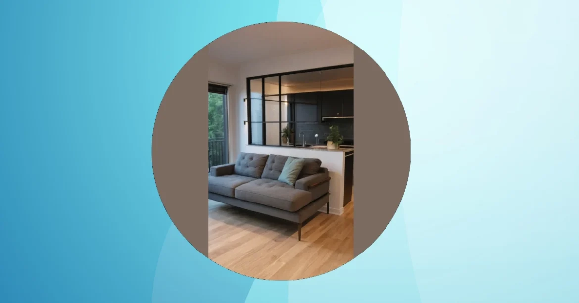 That comfy-looking couch practically screams “Netflix and chill,” doesn’t it? It’s amazing how a stylish sofa can instantly make a small living room feel like a grown-up haven, even if you’re still figuring out how to perfectly arrange all your stuff (we’ve all been there!). The glass partition is a clever trick too; it cleverly separates the kitchen from the living room without making the space feel cramped. It’s all about maximizing that small space and making it feel as big and luxurious as possible, even if you’re sharing your living room with a mountain of textbooks!