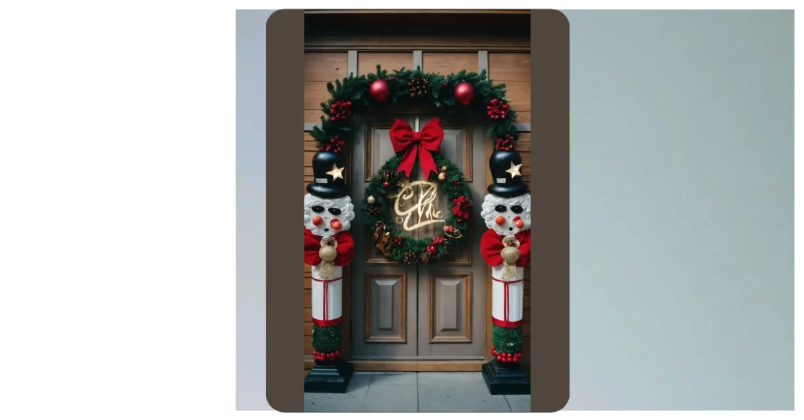 The whole scene screams “Merry Christmas!” It’s the kind of festive decoration that would make even the grumpiest Grinch crack a smile (maybe!). You could practically smell the pine needles and gingerbread from here! Imagine the amount of effort it took to make this tiny Christmas wonderland. It’s definitely the star of this holiday show, and probably the most stylish door decoration ever seen!