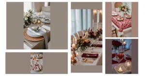 Seriously, who needs a mountain of presents when you’ve got this kind of festive fabulousness? This setup shows you don’t need over-the-top decorations to feel the Christmas spirit. Those rich colors, the warm glow of the candles, the elegant plates – it all screams cozy and inviting. Plus, imagine the Instagram likes! It’s the perfect way to celebrate the holidays in a way that’s both beautiful and totally stress-free. Time to trade those frantic gift hunts for a relaxing Christmas feast!