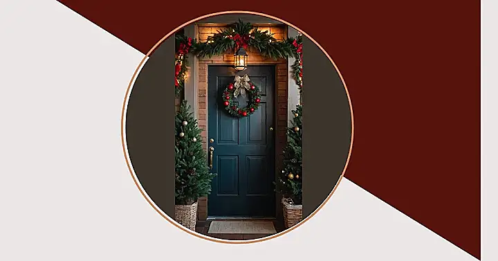 Seriously, who needs a wreath when you can have this magnificent garland? It’s like a Christmas party for your door, all decked out with ornaments and lights! You could practically smell the gingerbread cookies from the sheer festive perfection. It’s the kind of holiday decor that makes your neighbours secretly jealous (but they’ll definitely give you compliments, don’t worry!). This is definitely not your grandma’s Christmas door (unless your grandma has amazing taste!).