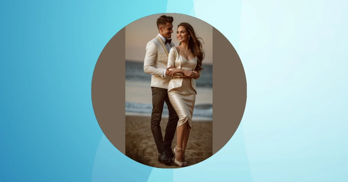 This picture screams “couple goals,” doesn’t it? Imagine this super stylish duo rocking up to a Christmas party—they’d totally steal the show! That shimmering champagne-colored outfit on the lady is perfect for a festive get-together. It’s elegant, but not stuffy; she could dance the night away in that dress without a worry! And the guy’s cream suit? Seriously dapper, especially paired with that little bow tie. They look like they’re ready to sip hot cocoa and slow dance on a wintery beach—who needs snow when you’ve got this much holiday romance?