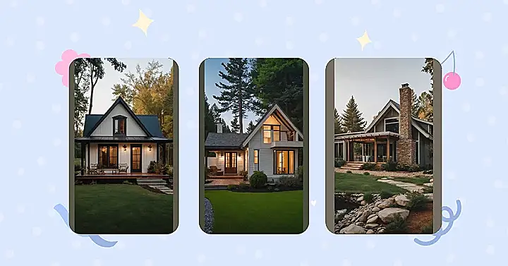 This house isn’t your grandma’s stuffy old cottage – unless your grandma had seriously awesome taste! It’s got that charming vintage vibe with the stone chimney and cozy porch, but then BAM! Modern lines and a sleek grey color give it a totally updated feel. Imagine sipping lemonade on that porch, feeling the sun on your face, while your Instagram feed explodes with likes. It’s the perfect blend of “come relax” and “check out my awesome style.”