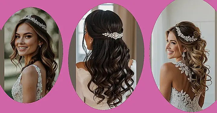 Getting ready for a wedding is like preparing for a super important test, but instead of math, it’s all about looking amazing. This half-up hairdo is the perfect cheat sheet! It’s like saying, “I’m sophisticated and put-together,” with the top part, but also, “I’m still fun and down to party,” with the flowy curls. Plus, that sparkly headband? It’s basically the wedding equivalent of acing the exam.