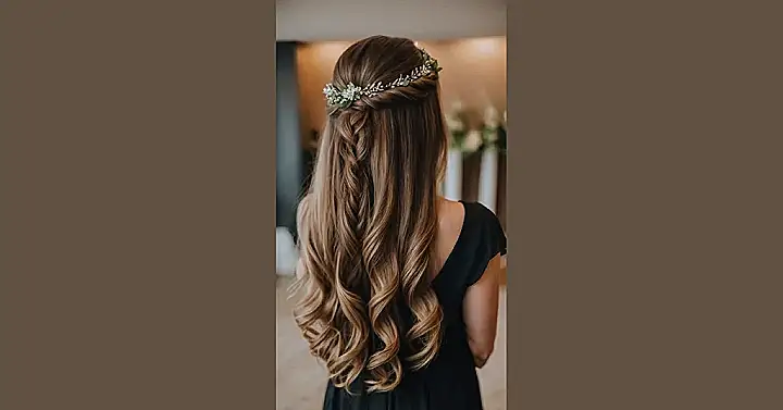 Looking good for a wedding is kind of a big deal, especially when you’re standing up there beside the bride! This hairstyle in the picture is basically the superhero of bridesmaid looks. You’ve got this cool braid that’s like, “Yeah, I put some effort in,” plus loose, wavy hair that says, “But I’m still here to party and maybe bust a move on the dance floor without my hair falling out.” And check out that little sparkly hairpiece – it adds just enough bling to feel fancy without looking like you’re trying to outshine the main event. It’s elegant, stays out of your face (mostly), and looks awesome from every angle, which is key for all those photos you’ll be in.