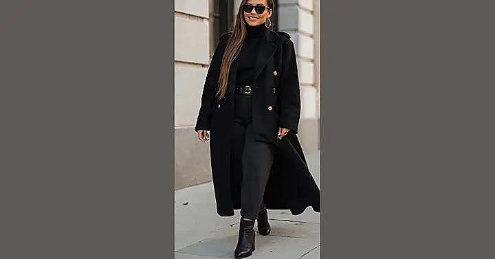 **Paragraph 1:** Hey there, fashion friends! November’s got that chilly vibe, but that doesn’t mean your style has to hibernate! This picture is all about rocking that perfect balance of cozy and cool. See that amazing long black coat? It’s basically a stylish hug for your body. Paired with those sleek black pants and ankle boots, it’s the ultimate “I woke up like this, but way cooler” look. This isn’t your grandma’s November outfit ‚Äì this is November casual, redefined! Think comfy but chic, perfect for hanging out with friends or maybe even a sneaky trip to grab some pumpkin spice latte.