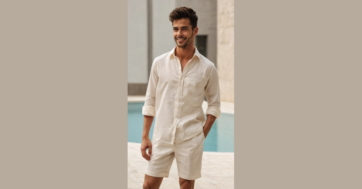 You know that feeling when you want to look super put-together but also secretly wish you were still in your PJs? Well, this shirt outfit has totally cracked the code! Our friend here is rocking a crisp, light shirt and matching shorts that practically scream ‘I’m effortlessly cool and probably on vacation.’ It’s like his clothes are whispering, ‘Don’t worry, I’m breathable!’ while also shouting, ‘Yeah, I look this good without even trying!’ Forget wrestling with fancy clothes; this simple yet stylish combo is proof that comfort and cool can totally be best buds.