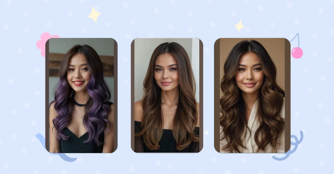 This girl is rocking a hairstyle that’s seriously out of this world! It’s like a purple waterfall cascading down her shoulders, and it’s so smooth and silky that you just want to run your fingers through it. Think about it, it’s like a real-life mermaid, but instead of scales, she’s got these incredible waves of purple hair that shimmer in the light! Who knew purple could be so cool?