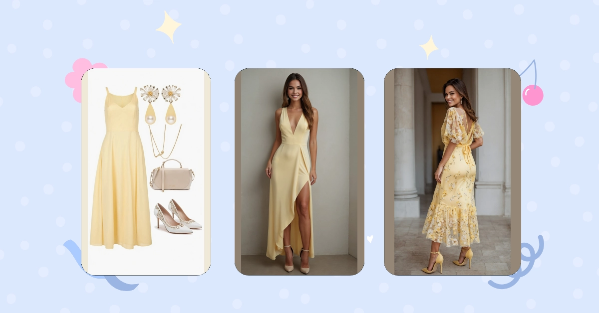 This isn’t just a pretty dress; it’s a whole vibe! The soft yellow color isn’t too flashy, making it surprisingly easy to style for different occasions. You could totally rock this butter yellow beauty to a summer party, a graduation, or even just a fancy brunch with your besties (though maybe don’t actually try to spread butter on it!). Notice how simple accessories like those elegant earrings and pointy heels just elevate the whole look without screaming for attention. It teaches us that sometimes, the best styling trick is letting the main star – that gorgeous, cheerful dress – do all the talking. Plus, who wouldn’t feel happy wearing something that reminds them of pure sunshine?