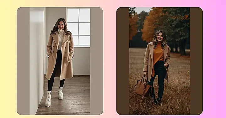 This outfit is basically screaming, “Fall, I’m ready for you!” A comfy beige coat is perfect for those crisp autumn days, and the black jumpsuit is both stylish and practical. I’m totally getting autumn vibes from this outfit!