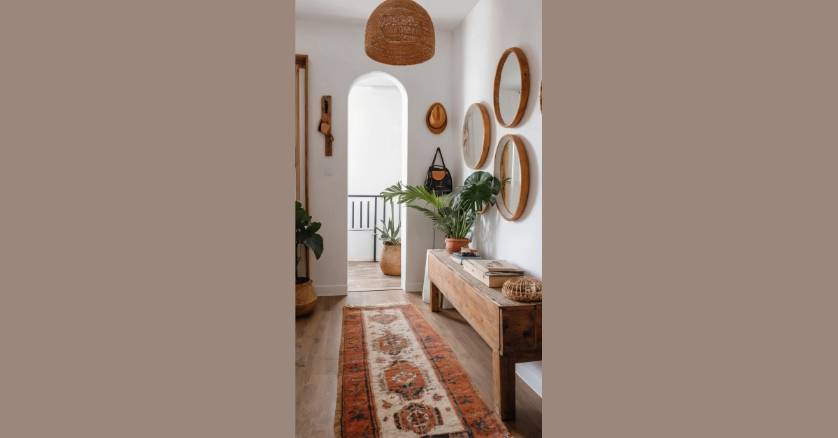 And when it comes to apartment decorating, every little detail adds up to a huge vibe. That long, super cool patterned rug isn’t just there to keep your feet warm; it’s practically a red carpet inviting you further in! And those multiple round mirrors? They’re not just for last-minute selfie checks; they’re secretly making the hallway feel way bigger than it actually is, which is basically a decorating superpower for smaller spaces. With a stylish spot to hang your hat and toss your bag, this entryway shows you can totally create a cozy, functional, and ridiculously cool first impression without needing a castle-sized space.