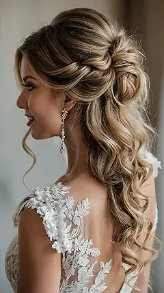 We all know the power of a half-up with a veil—seriously, it’s the ultimate classic move! It highlights your face while allowing your curls to cascade down beautifully. If you’re looking for something a bit more sleek yet equally breathtaking, a low bun adorned with lovely flowers can add a touch of whimsy. Plus, you can personalize it to match your wedding theme perfectly!