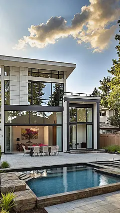 This isn’t your grandma’s fixer-upper! Just look at this incredible renovated house – it’s like stepping into a modern-day magazine spread. With its sleek lines, massive windows that practically vanish, and a swimming pool that screams “summer fun,” this place is seriously next-level. You could totally host the coolest pool party ever here, and trust me, everyone would be seriously jealous of your awesome digs. Forget awkward family photos in front of chipped paint; this is where Instagram dreams are made!
