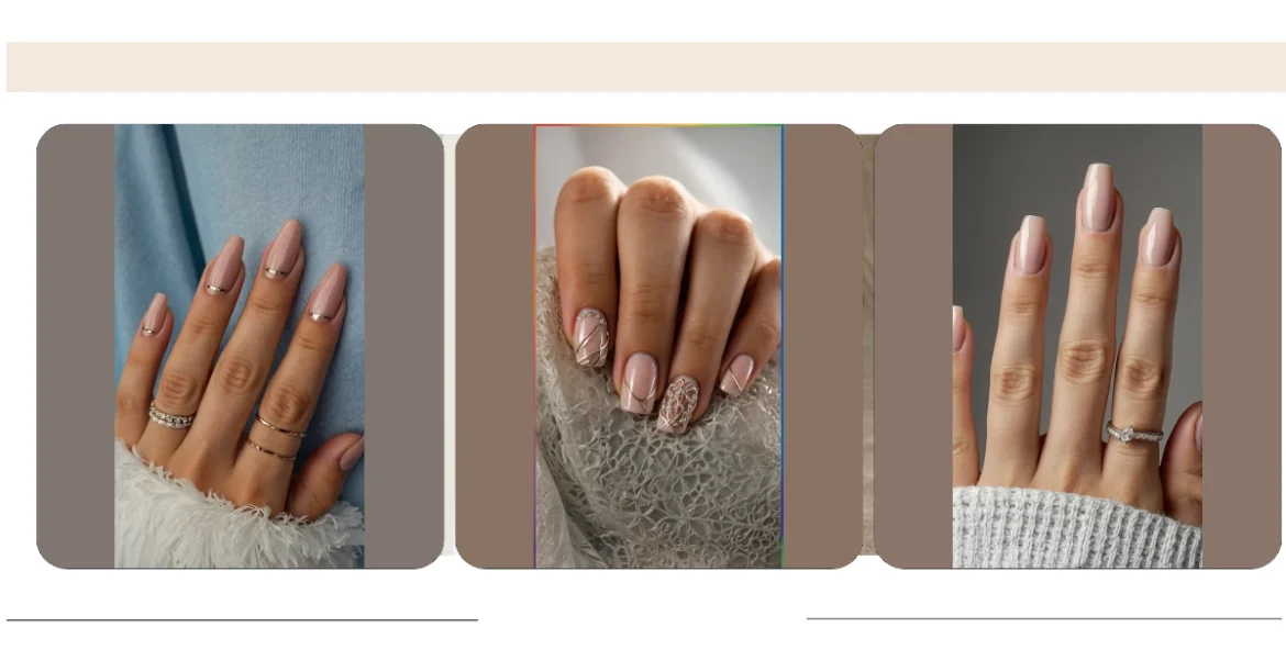 And let’s not forget those cute, delicate rings and that cozy sweater! These ‘modern nails’ aren’t just nails; they’re the whole vibe, perfectly matching that comfy-yet-stylish look. They make it seem like you always have your life together, even if your homework is still hiding somewhere under your bed. It’s like these nails are saying, ‘Yeah, I’m classy, but I also know how to binge-watch a whole season in one sitting.’