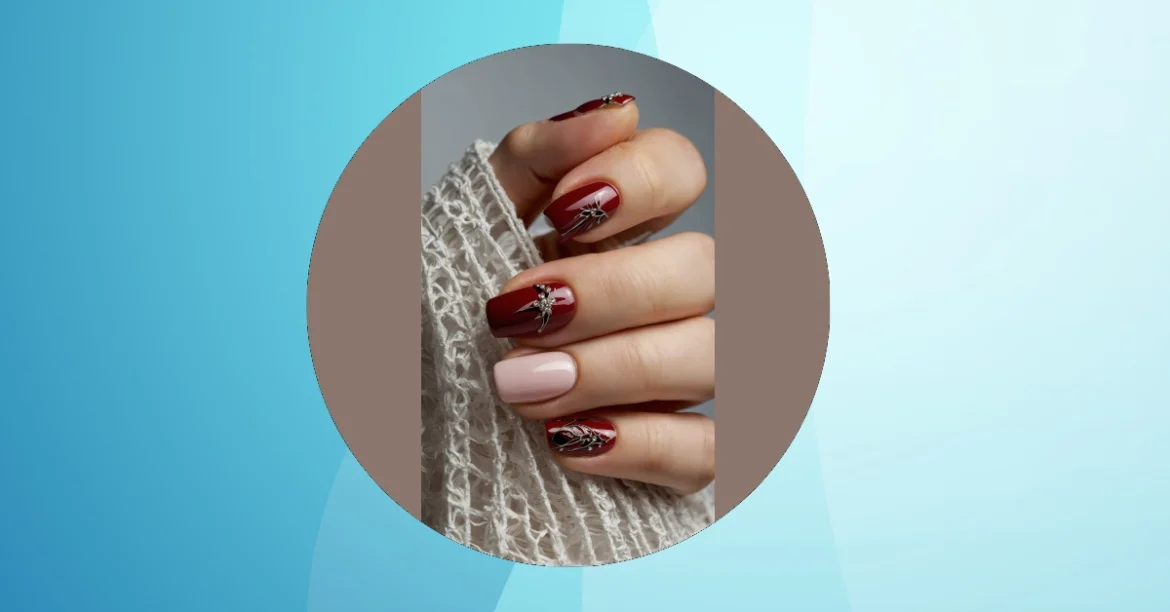 Check out these nails, they’re totally ready to crash a fancy summer garden party or maybe just blind everyone at the beach with sparkle! The deep red ones look super glamorous, like tiny rubies ready for action, and then bam, there’s a sweet pink one chilling like it’s nobody’s business. You almost expect them to start singing about sunshine and popsicles, except they’re probably too busy looking fabulous and making sure that little silver spiky thing on top doesn’t catch on anything important.