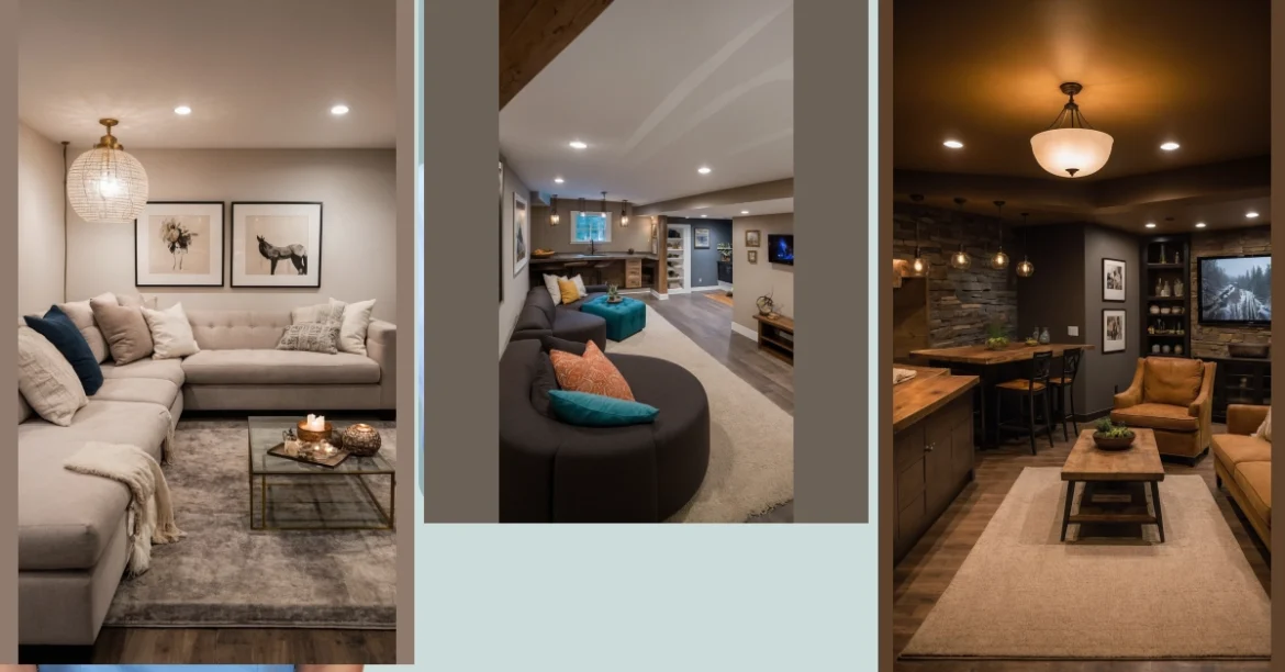 This isn’t your grandma’s dusty, forgotten basement where old exercise bikes go to retire. No, this cozy basement is basically a masterclass in “how to never leave your house again” chic! With that inviting, curved sofa practically begging you to sink in and those soft lights making everything glow, it’s so comfortable you might just start taking your calls from under a blanket fort down here. Good luck convincing anyone to come upstairs for dinner when this ultimate chill zone exists!