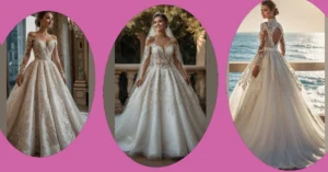The lady in the picture totally rocks this amazing red dress, making us wonder why anyone ever stuck to plain old white for a wedding! With its gorgeous lace details and that flowy, princess-worthy skirt, it’s practically begging for a grand entrance. Forget blending in; this dress is all about making a statement so bold, even the wedding cake might feel a little shy next to it. You’d definitely need a red carpet (or at least a very clean aisle) for this showstopper to sashay down!