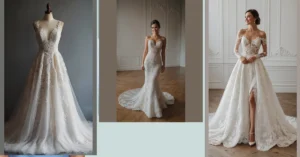 Finding that perfect, unique bridal dress is like unlocking a fashion level-up for your big day. This one in the picture just nails it; it’s special without being stuffy. Imagine trying to do your best dance moves on the floor in all that awesome lace – maybe you’d have to be careful not to snag it, but totally worth it for how amazing you’d look! It’s all about choosing something that makes you feel incredibly ‘you’ and makes everyone else go, “Okay, that is one seriously cool and different wedding dress!”