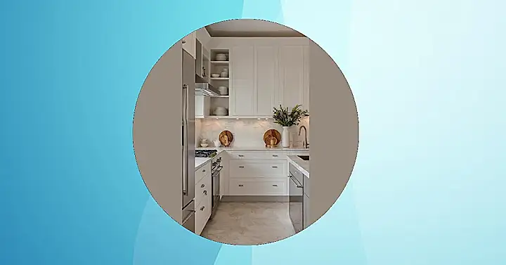 This kitchen looks so ridiculously clean and perfect, you’d probably feel guilty even *thinking* about making a mess in it. With those sparkling white cabinets and fancy marbled countertops, it’s like a supermodel kitchen – gorgeous, a little intimidating, and definitely not built for your average spaghetti night disaster. You just know that if a single crumb dared to fall, it would immediately get picked up by an invisible, highly trained crumb-squad.