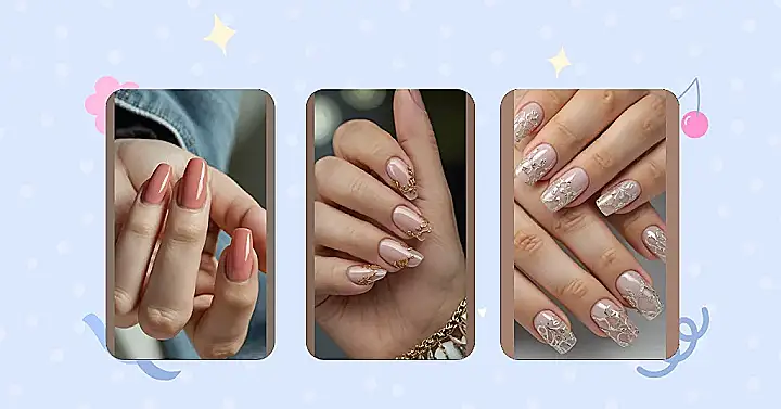 Want nails that look fancy enough for a red carpet selfie but aren’t so complicated you need a map to figure them out? Feast your eyes on this! It’s like they took a chill nude colour, sprinkled it with magic fairy dust (or tiny rhinestones, close enough!), and somehow made it look totally effortless. These nails are basically saying, “Yes, I’m elegant, but I can also totally crush my homework and not lose a single sparkle.” It’s the perfect mix of simple style and just enough shine to catch the light and make you feel like a low-key queen.