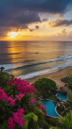 Bali is like a giant playground for grown-ups. Picture this: You’re lounging by a pool, feeling the warm sun on your face, and the only sound is the gentle crashing of waves in the distance. The sky is painted with a million shades of orange and pink, like someone spilled a giant box of crayons over it! This is what a Bali sunset looks like ‚Äì just breathtaking.