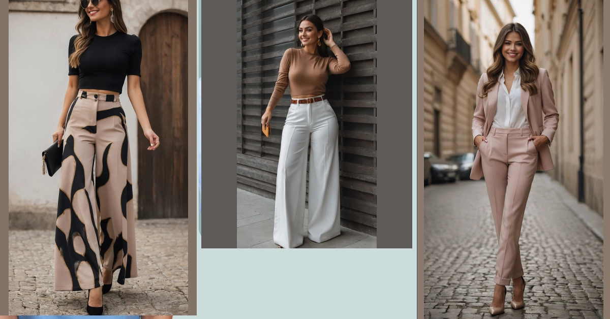 Pairing those showstopper trousers with a sleek black crop top and some cool shades makes this look unstoppable. It’s the kind of outfit that says, “Yes, I know I look good, and I also know where the best fries are.” And who doesn’t love an outfit that’s both super chic and probably comfy enough to sneak in a quick nap if needed? This whole vibe proves that dressing up can be totally chill and playful, making it one of those go-to women trousers outfits for when you want to feel fabulous.