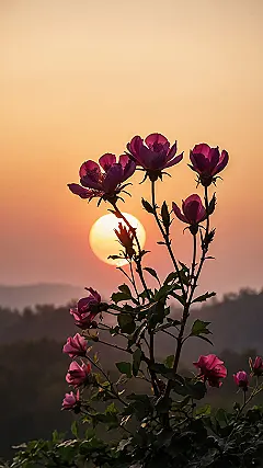 Who needs a fancy vacation when your window can look this good? This isn’t just a sunset; it’s practically a superstar performance, with the sun doing its dazzling drop-in act behind those misty mountains. And those flowers? They’re totally posing, making sure they get their best angle as the main characters in this epic golden hour drama. It’s the kind of view that makes you want to ditch homework and just stare, thinking deep thoughts or maybe just wondering if those flowers are secretly gossiping about the sun’s outfit.