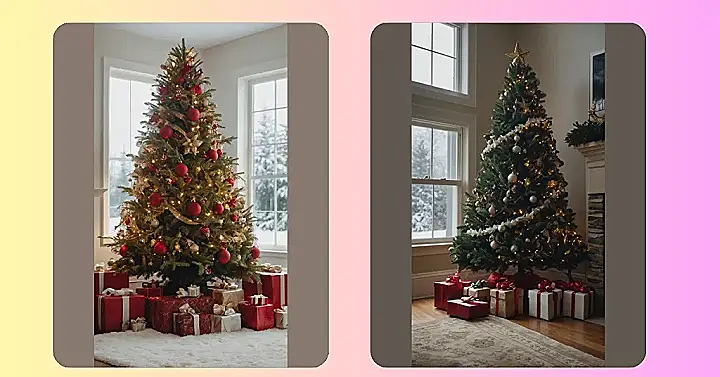 This Christmas tree is so classic, it’s practically wearing a monocle and sipping cocoa. Look at those perfectly placed ornaments—all shimmery and sophisticated! It’s not trying too hard, but it’s clearly the star of the show. Those presents underneath look like they’re bursting with equally amazing goodies. It’s the kind of Christmas tree that makes you want to grab a warm blanket, a mug of hot chocolate, and settle in for a night of festive cheer.