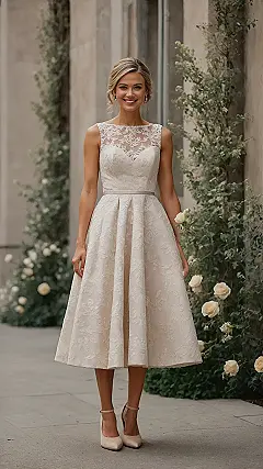 But looking amazing is just half the battle; surviving the whole event is the other! Will those adorable ankle-strap heels hold up through hours of mingling and potentially epic dance-offs? And can you sneak a second cupcake without leaving a crumbly trail on that pristine, textured dress? This outfit seems like a total champion, ready for everything from graceful sips of punch to busting out your best ‘Macarena’ moves. A knee-length dress like this is a secret weapon for freedom of movement, letting you glide through the crowd and own the dance floor without worrying about tripping over fancy fabric.