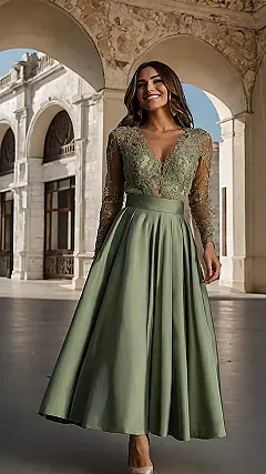 This dress is like a fairytale come true! Imagine twirling in this gorgeous, olive-green number. It’s got that perfect mix of fancy (the lacy top!) and comfy (that swishy skirt is begging to be danced in). Seriously, who needs a tiara when you’ve got this much elegance? It’s the kind of dress that’s both simple enough for everyday and stunning enough for a special occasion – kind of like that awesome friend who’s always there for you, but also manages to look fabulous doing it.
